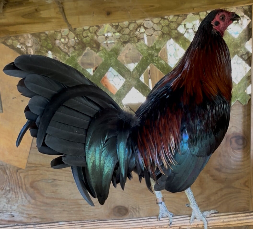 One 20 month-old rooster is a purebred Mel Sims Black. If you have any questions, you can call me at 281-745-3355. Shipping.$ 100.00 It is being sold for breeding purposes only
